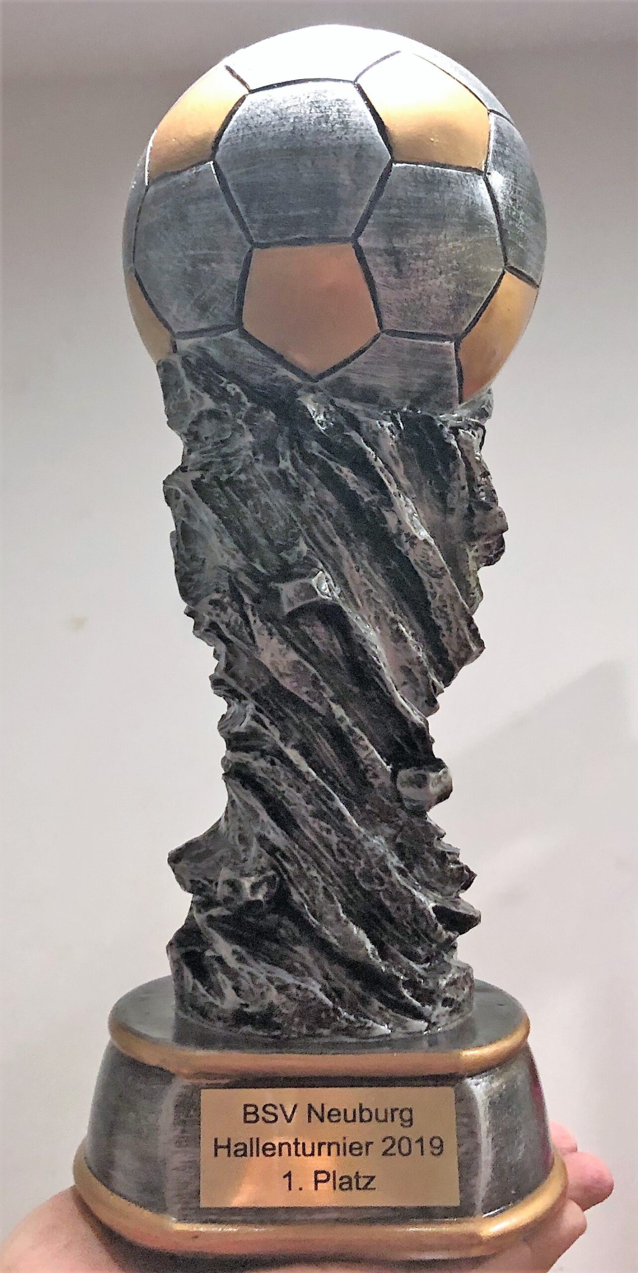 Eine durchaus erfolgreiche Hallensaison geht mit einem Turniersieg beim BSV Neuburg zu Ende. Nach dem man in der aktuellen Hallensaison F-Jugend Hallenkreismeister geworden ist,das E2-Turnier beim DJK Ingolstadt gewinnen konnte und dann in Zuchering fast die F-Jugend des großen 1860 Münchenbezwingen konnte, stand nun zum Abschluß noch einHallenturnier beim BSV Neuburg auf dem Plan.Da einige Spieler schon im wohlverdienten Urlaub waren, durften uns an diesem Tag gleich 3 Jungs der F1 unterstützen. (hier noch mal ein großes Dankeschön!!)Im ersten Spiel ging es dann auch schon gegen den Gastgeber. Und obwohl wir nicht auf Handballtore spielten, taten sich die Jungs schwer das Runde ins eckige zu buchsieren.Aber schlussendlich gelang es Lukas Eckert, noch vor dem Abfiff den verdienten Siegtreffer zum 1:0 zu erzielen.In Spiel 2 ging es gegen unseren „Kabinennachbarn“ den Jungs vom SV Nordendorf. (wo auch immer das ist J )In diesem Spiel stand schnell fest wer die besserer Mannschaft ist und am Ende der 10 Minuten Spielzeit hieß es dann sogar 5:0 für uns.(Tore: Laurenz Amann 1x, Lukas Eckert 2x, Derrick Ruchalla 1x, Jonas Graf 1x)Im letzten Gruppenspiel ging es dann eigentlich nur noch um die goldene Ananas, aber gegen das Tabellenschlusslicht FC Zell/Bruck brannte dennoch nix an und wir gewannen das Spiel mit 3:0.(Tore: Laurenz Amann, Lukas Eckert, Benjamin Kubat)Nun stand man im Halbfinale und wusste nicht so recht was das aus der anderen Gruppe auf uns zukommt….. und tatsächlich kam mit dem VfR Neuburg der spielstärkste Gegner auf uns zu.Doch im Tor hatten wir mit Jaydon Pfaller, unserem Neuzugang aus Wackerstein, einen sicheren Rückhalt und am Ende stand auf der Anzeigetafel 2:0 für den TV Vohburg.(Tore: Derrick Ruchalla und Lukas Eckert) FINALE!Hier hieß der Gegner nun BC Aichach, welche sich im anderen Halbfinale knapp gegen den SV Nordendorf durchsetzten.Aber auch im Finale stand schnell fest, wer hier am Ende als Sieger vom Platz geht und somit bleibt man auch im letzten Spiel ohne Gegentor und gewann das Spiel mit 3:0.(Tore: Joel Schuster und 2x Lukas Eckert) Nun freuen wir uns auf die nächste Herausforderung…. Die da heißt Rückrunde 18/19 auf nem schönen grünen Rasen