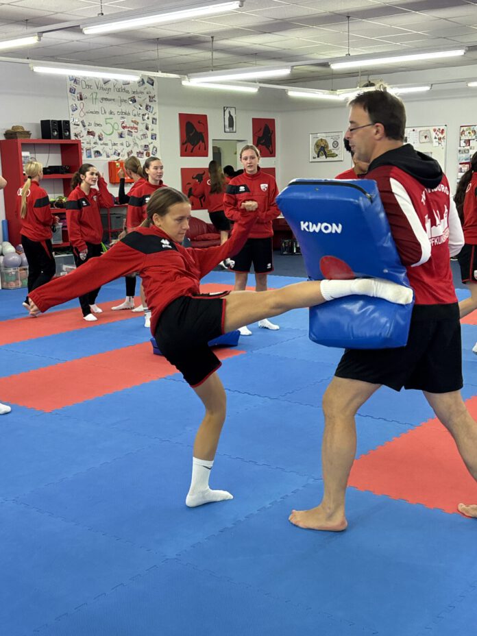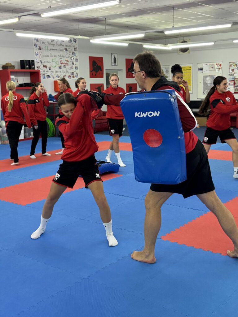 Die Teilnehmerinnen lernten grundlegende Karate-Kicks, präzise Fausttechniken und verschiedene Abwehrbewegungen kennen. Dabei legte Christian Frey großen Wert auf saubere Ausführung, aber auch auf Selbstvertrauen. Denn effektive Selbstverteidigung bedeutet nicht nur körperliche Stärke – sondern vor allem die Fähigkeit, in einer Stresssituation klar und entschlossen zu reagieren.