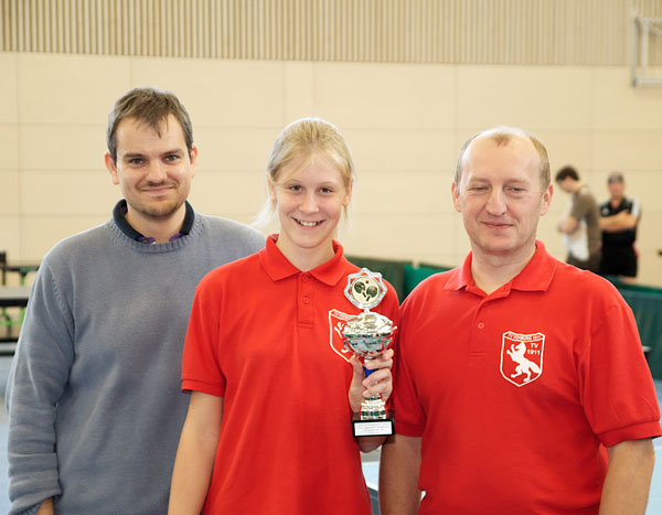 – Markus Pospiech wurde Vierter bei den Herren D. Markus spielte ein tolles Turnier und konnte einige höherklassige Gegner besiegen. Im Halbfinale und im Spiel um Platz 3 fehlt auch ein bißchen das Glück für den Gesamterfolg. Er verlor jeweils knapp in 5 Sätzen.