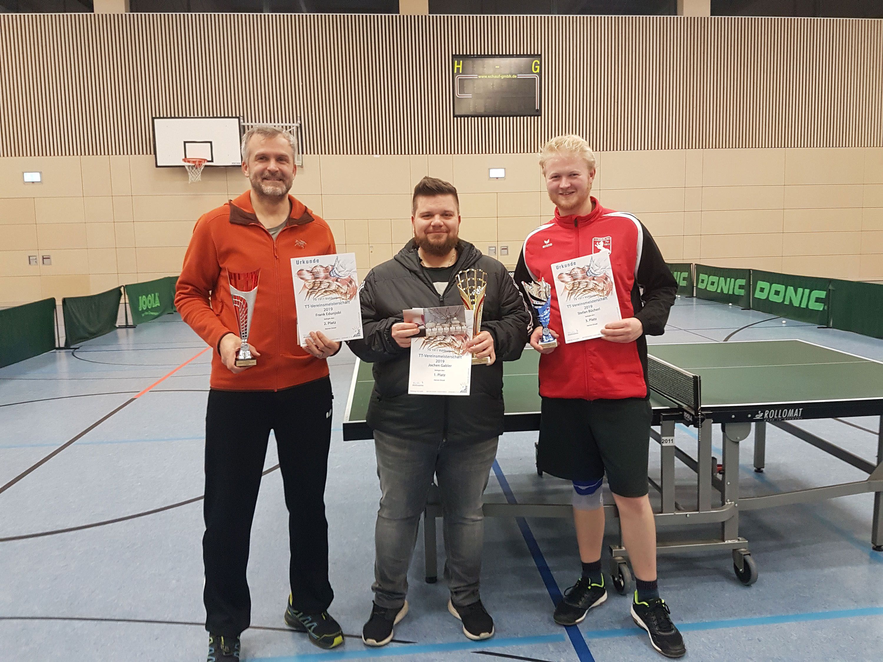 In der Vorrunde setzten sich in allen Gruppen erwartungsgemäß die Favoriten durch und zogen in das Viertelfinale ein. Dort gab es lediglich eine Überraschung durch „Gastspieler“ Stefan Bücherl. Er gewann gegen Vohburgs Seriensieger und Abteilungsleiter Alfred Okwieka mit 3:1 und traf im anschließenden Halbfinale auf unseren zweiten Neuzugang Frank Edunjobi. In einem spannenden Match setzte sich Frank aber mit 3:2 Sätzen gegen Stefan durch und zog ins Finale ein.
