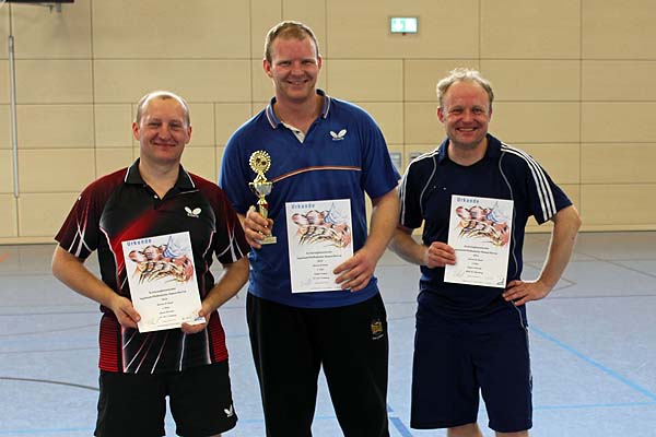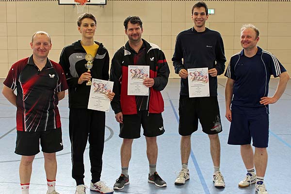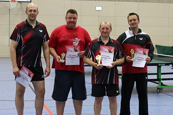 Bei der diesjährigen Vereinsmeisterschaft fanden sich 15 Spieler ein, um den begehrten Titel unter sich auszumachen. Zu Beginn wurden die Spieler in 3 Gruppen mit je 5 Teilnehmern ausgelost. In der Gruppe 1 konnte sich ganz souverän Wolfgang Böhm mit vier Siegen und 12:0 Sätzen durchsetzen. Zweiter wurde Niko Töllich vor Heid, Witte und Richter. In der Gruppe 2 wurde Markus Pospiech Erster, während bei Weber, Heinrich und Rott, bei gleicher Spielbilanz, die folgenden Plätze durch das Satzverhältnis ermittelt wurden. Gefolgt von Thomas Regnat. Die Gruppe 3 war dann die sogenannte "Todesgruppe". Hier fanden sich mit Okwieka, Felber und Robin immerhin 3 Vereinsmeister wieder, dazu noch Thomas Wolfsteiner, der erst diese Saison in die 1. Mannschaft aufgerückt war. Komplettiert wurde das Feld von Christian Wolf, der ganz klar das größte Lospech, mit dieser Gruppe, hatte und dann auch komplett chancenlos war. Alfred Okwieka konnte alle seine Spiele gewinnen und zog somit als Erster in die nächste Runde ein. Mit jeweils 2:2 Siegen bei den anderen Dreien, musste auch hier das Satzverhältnis entscheiden.