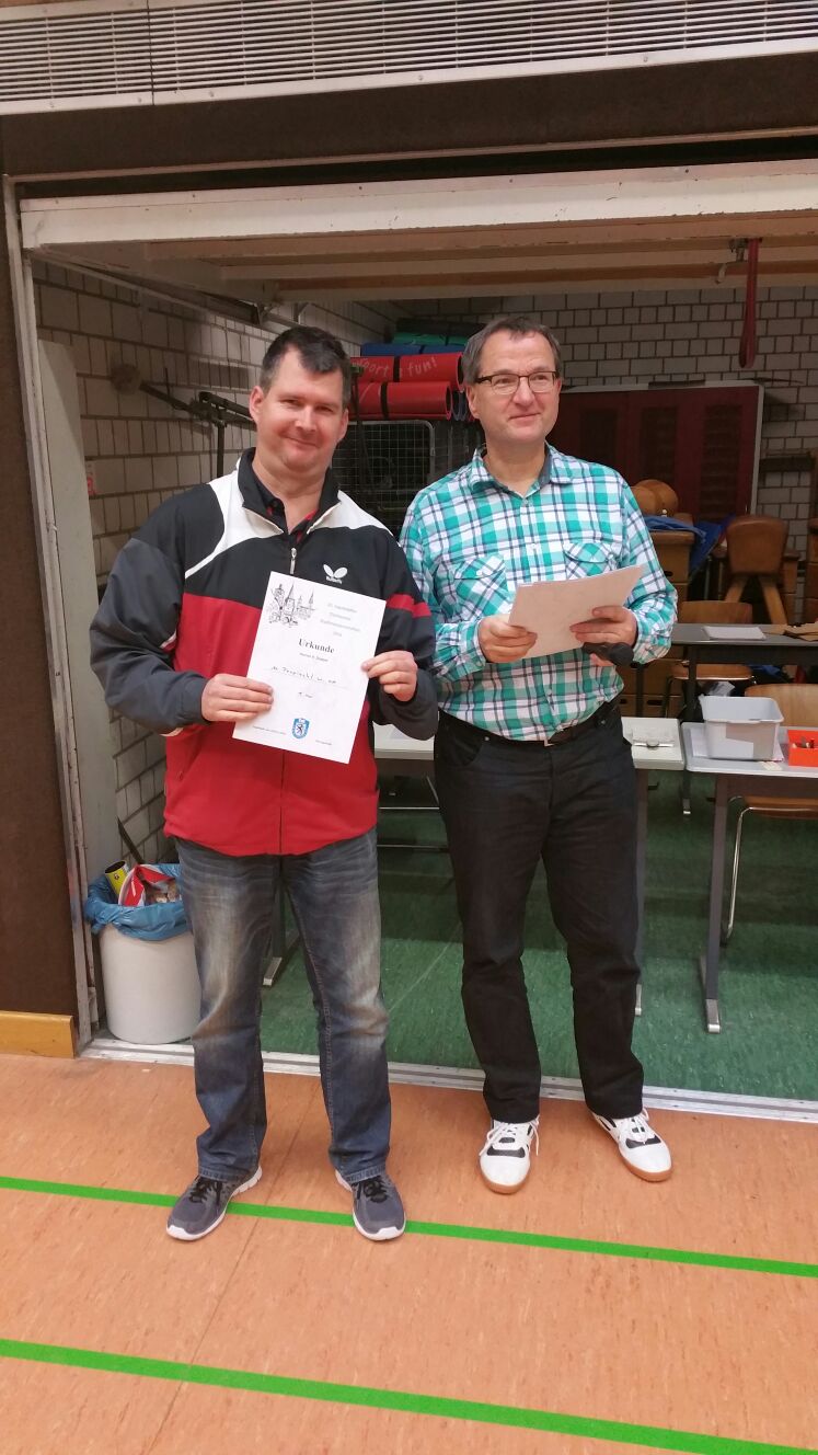 Markus Pospiech war bei den Herren D im Doppel erfolgreich. Er gewann mit seinem Doppelpartner Werner Ott vom TV Ingolstadt den Stadtmeistertitel.