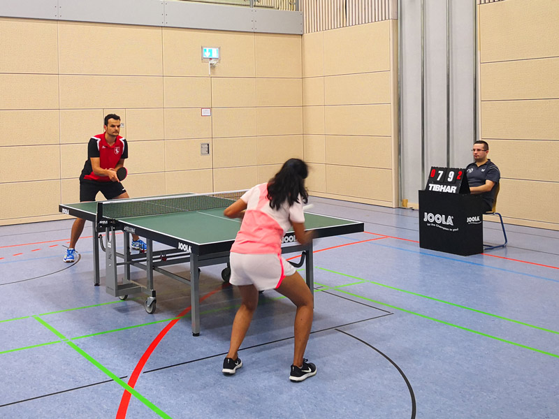 Danach kam das spannendste Spiel des Abends: Markus Kürzinger gegen Megha Kadole. Das Spiel war geprägt von vielen schönen Ballwechseln und knappen Sätzen. Leider verlor Markus Kürzinger das Spiel knapp. So brachten dann die Duelle von Markus Höflinger gegen Karlheinz Ziegler und Thomas Schiegl gegen Karlheinz Ziegler die Entscheidung zu Gunsten der 6. Mannschaft.