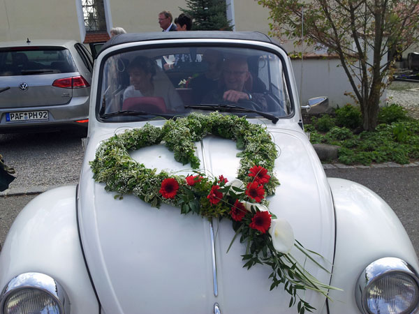 Danach ging es für das frisch vermählte Paar im weißen Oldtimer und für die Hochzeitsgesellschaft zum Rockermeier nach Unterpindhart.